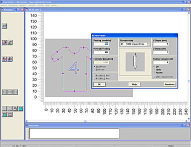 • Zoom, scroll functies via werkscherm en muis.CAM-module; in deze module worden de bewerkingparameters (materiaal, gereedschap en bewerkingen) ingevoerd, alsmede de CNC-code gegenereerd.